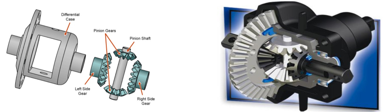 - On a turn, left and right wheel spins differently.